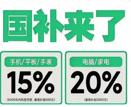补贴比例:15%,封顶500元;3333元以下机型按价15%直减举例:6000元旗舰机,立省500元;3000元机型,立省450元。