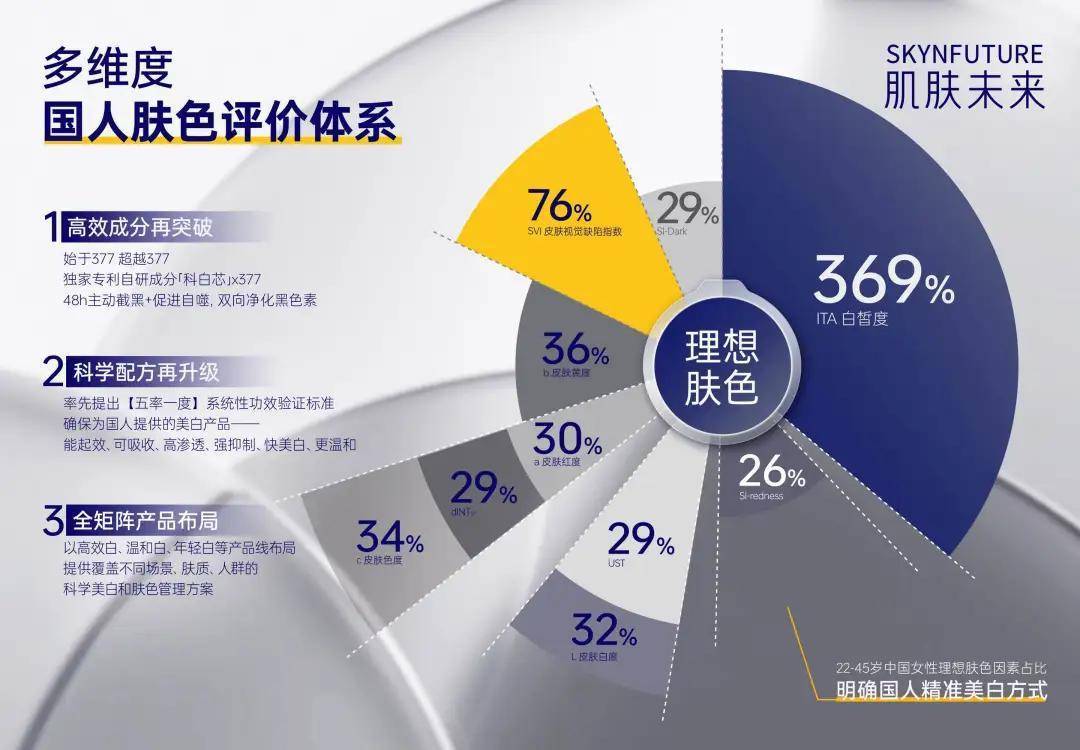 在展会上,肌肤未来重磅发布了多维度国人肤色评价体系与独家自研专利成分“科白芯”。据了解,品牌从国人的肤色特色和审美需求出发,并结合心理学、行为科学与统计学原理,自主创新研发了一套涵盖28个维度的多维度数字化肤色评价体系。该评价体系精准识别了影响不同人群肤色感知的关键因素,为产品研发提供了科学依据,并为未来个性化肤色解决方案奠定了坚实的数字化基础。