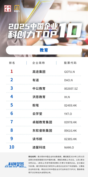 此次荣登《南方周末》“2025中国企业科创力教育榜”第一名,是对高途十一年来坚持“教育为本、科技为翼”发展理念的有力肯定。面向未来,高途将继续以AI为核心引擎,深化教育数字化转型,推动高质量、个性化教育普惠化发展,致力于打造人人乐用的终身学习服务平台,在全球教育科技变革浪潮中贡献中国方案与中国智慧。