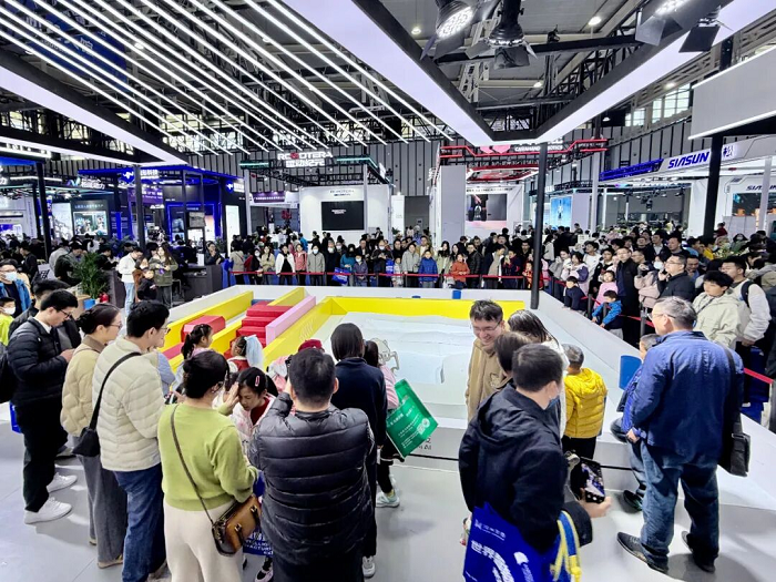 这一在展馆内“独一无二”的全地形跑酷赛道,也因其强烈的体验感与趣味性,吸引大量观众驻足,尤其受到亲子家庭的青睐。孩子们得以在此亲手操控机器狗,于欢声笑语中完成科普启蒙,这也让智身科技展台成为全场最具人气的聚集地之一。