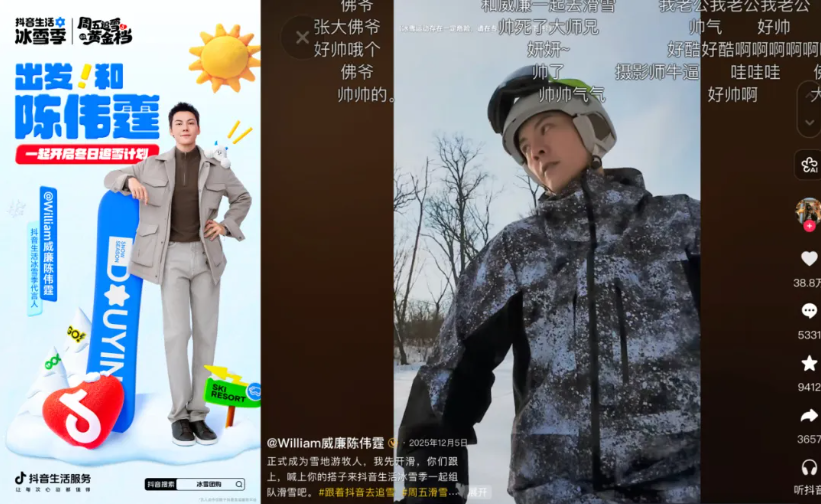 从活动启幕开始,抖音生活冰雪季代言人陈伟霆就化身“雪地游牧人”,如同游牧者追寻草场一般,向大家发出追雪邀约,带领大家奔赴各地雪场,探索冰雪之美,打破冰雪运动的距离感。