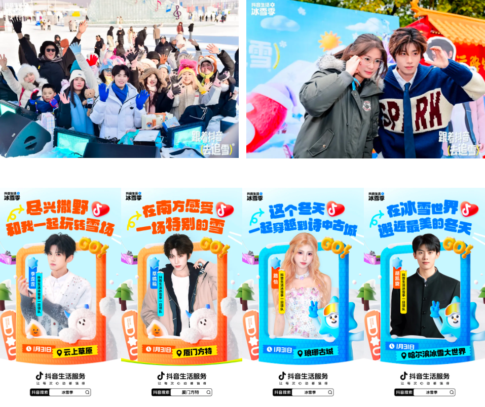 看到大家对冰雪的热爱后,抖音生活服务顺势推出「抖音生活冰雪季」,以「跟着抖音去追雪」为核心导向,依托明星达人联动、线上活动落地、创新打造「周五追雪黄金档」等玩法,带大家引向一场场有温度、有乐趣、有福利的追雪盛宴。