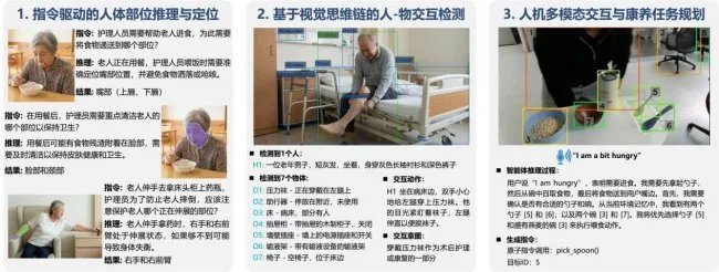 然而,康养场景对机器人的要求极为复杂:老人表达模糊,机器人既要“听懂”指令,也要“看懂”细微的肢体语言;家居环境多变,机器人需要在真实三维空间中稳定执行动作;更重要的是,从抓取碗勺到舀食喂饭,每一步都需要对工具进行精细化使用,而非简单的抓取放置。”