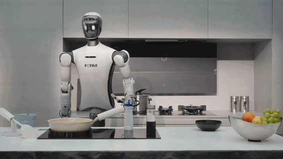 厨房是家庭服务场景中最为复杂的高地,也是具身智能必须攻克的核心战场——食材、容器、工具品类繁多且具备柔性、透明、易碎等复杂特性;无色液体与反光容器是视觉感知的固有难题,油烟更带来不可预测的扰动;从开、关、舀、倒到搅、拌、翻、转,机器人需要掌握十余种精细动作并实时动态调整;而水、火、电的共存,则对安全性提出了极高要求。