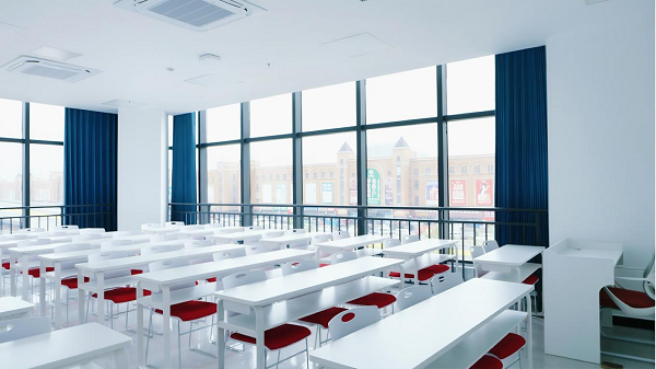 同时,自习室配备固定座位、护眼灯,搭配标准化大教室、专属背书室、1V1辅导小教室,再加上合规资质齐全的食堂、健身房,实现“学习无忧、生活安心”。