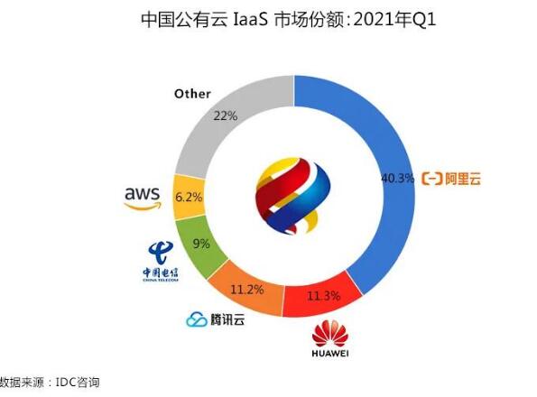 A5创业网(公众号:iadmin5)7月29日报道:据IDC最新发布的2021年第一季度中国公有云市场数据显示,季度内IaaS+PaaS市场规模达46.32亿美元(301亿人民币),其中阿里云排名第一,市场份额为40%,腾讯云、华为云分别位列第二、三名,市场份额均为11%。