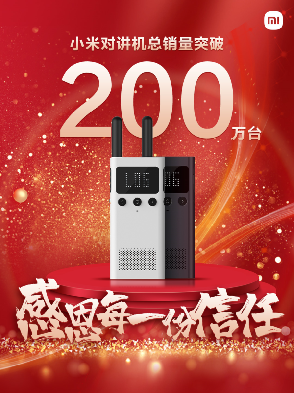 • 小米对讲机全网销售突破200万台!单品类销售霸榜