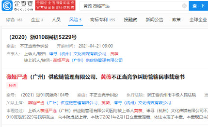 A5创业网(公众号:iadmin5)6月2日报道:薇娅严选(广州)供应链管理有限公司于6月1日新增强制执行信息,执行标的111681元,执行法院为广州市白云区人民法院。目前该公司已被强制执行40.50万元。此前,薇娅严选(广州)供应链管理有限公司以带“薇娅”字样的名称、昵称、头像等开展与直播带货相关的经营活动,被薇娅本人及其所属公司以不正当竞争纠纷为由诉至法院。法院认为被告薇娅严选公司实际在抖音中