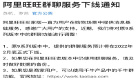 • 阿里旺旺买家版群聊服务将在2022年2月底正式下线