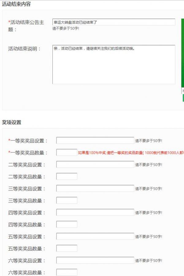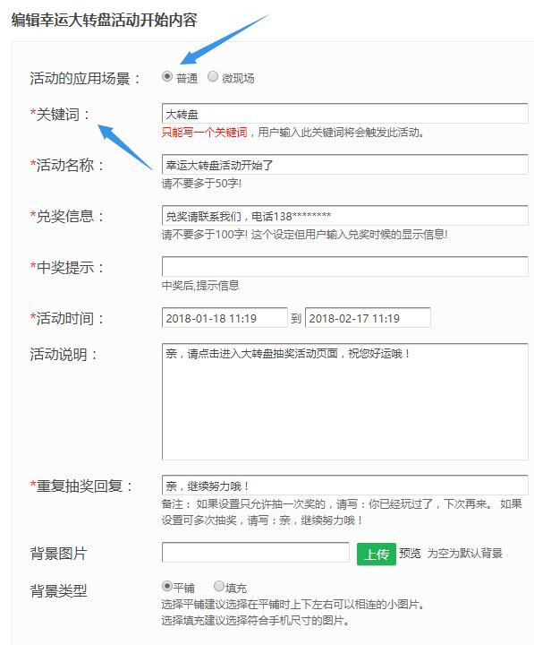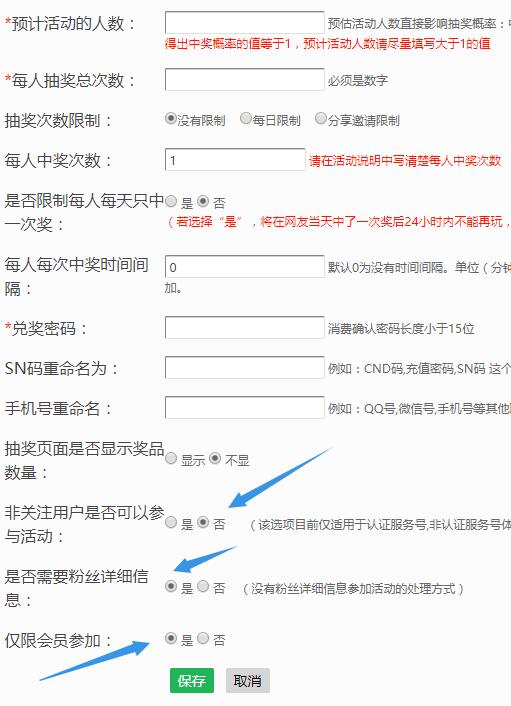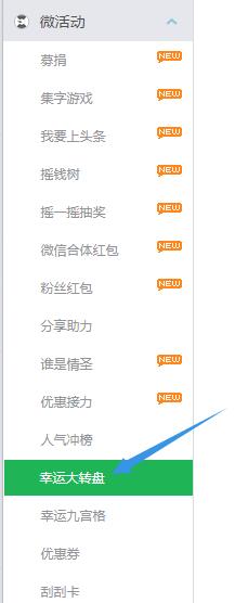 然后,在左边微活动里面,点击幸运大转盘---新增幸运大转盘活动,然后填写活动的内容,注意勾选最后面的参数。(活动已经是完善的模板框架了,无需技术亦可直接添加)
