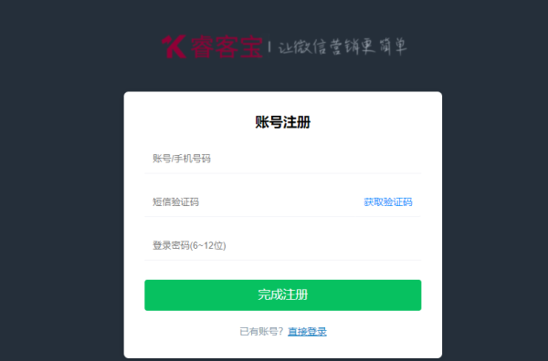 1.注册绑定,百度搜索睿客宝并在右上角注册一个账号完成和自己认证服务号的绑定授权,如下图所示