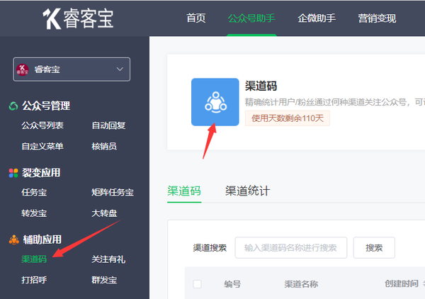 首先公众号设置里面可以生成二维码,但是这样的二维码不具备数据统计功能。依靠睿客宝平台生成的渠道二维码,可以统计不同渠道来源的粉丝数量(关注、取关及净关),通过各渠道的数据对比,需要强调的是,微信公众号统计用户来源渠道只有认证服务号才可以使用,下面请看具体步骤